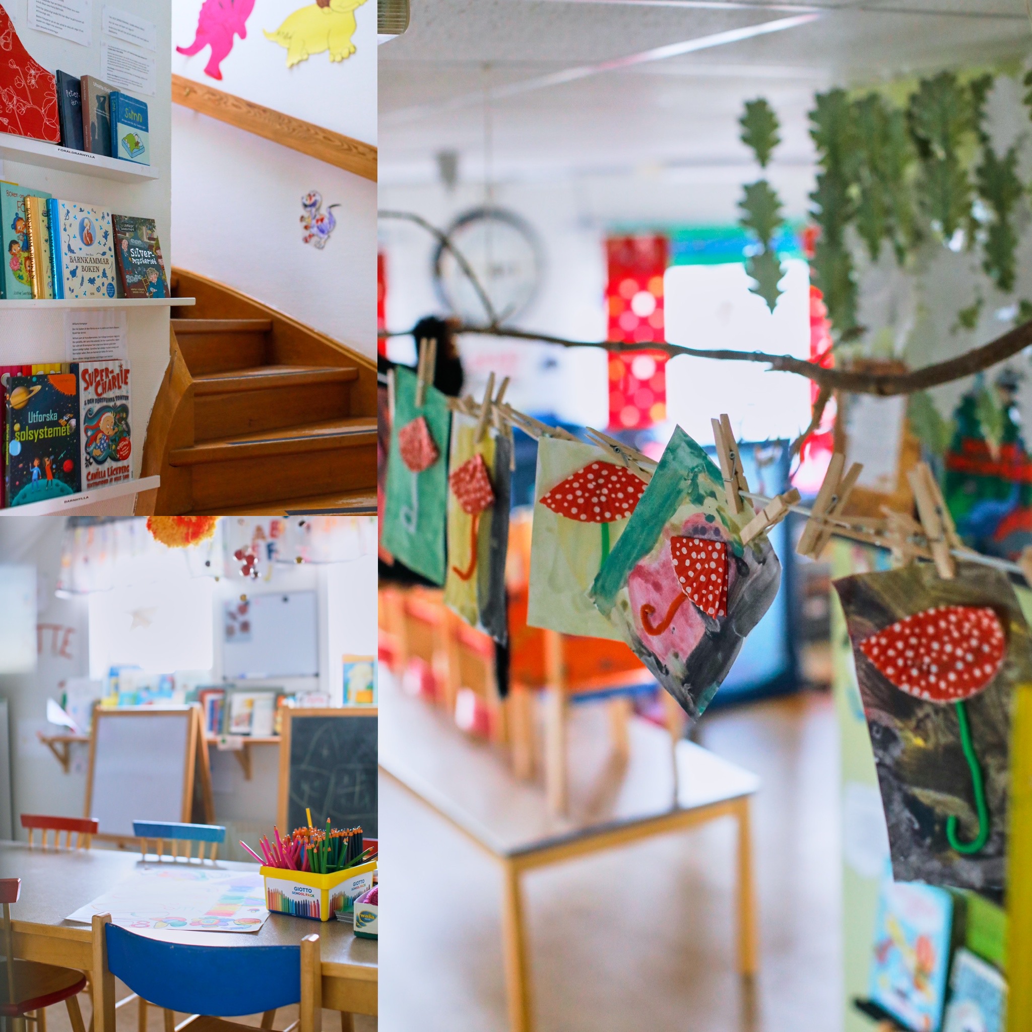 Nu har vi äntligen flyttat in i våra nyrenoverade ljusa lokaler! Här har vi massor med plats för lek, pedagogik och mys i en färgglad lekfull miljö. Vi har inrett på barnens premisser och strävar efter att skapa rum som stimulerar barnens sinnen och nyfikenhet. Olika teman i lärmiljöerna ger upplevelser som varierar över tid. Fantasin sätter inga gränser – vi utvecklar inredningen och lärmiljöerna ständigt, för att ge våra barn en härlig miljö att vara i!